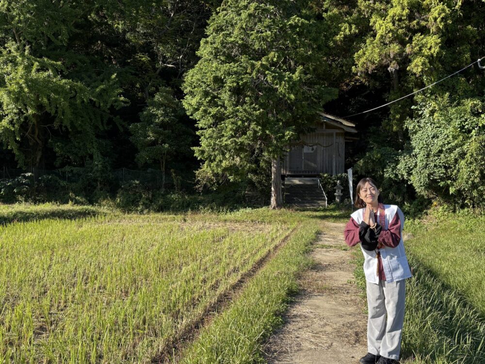 米所で清まってるところにそれぞれ観音様が現れるんだ、と聞いて稲穂と観音像を拝んだあとその路肩でひと休み。