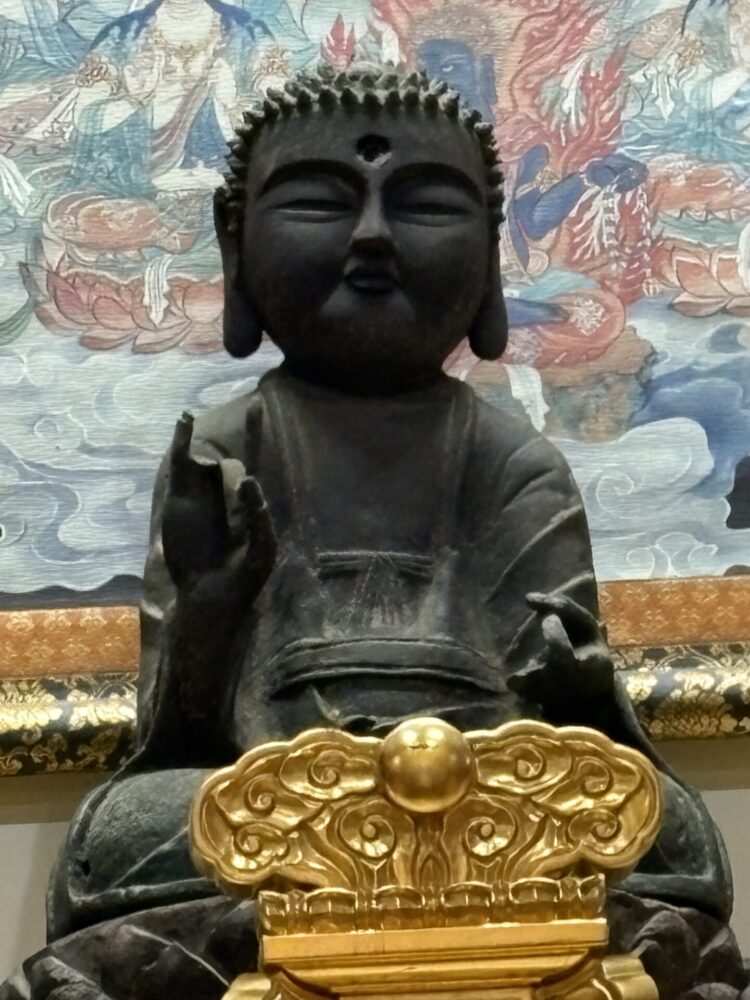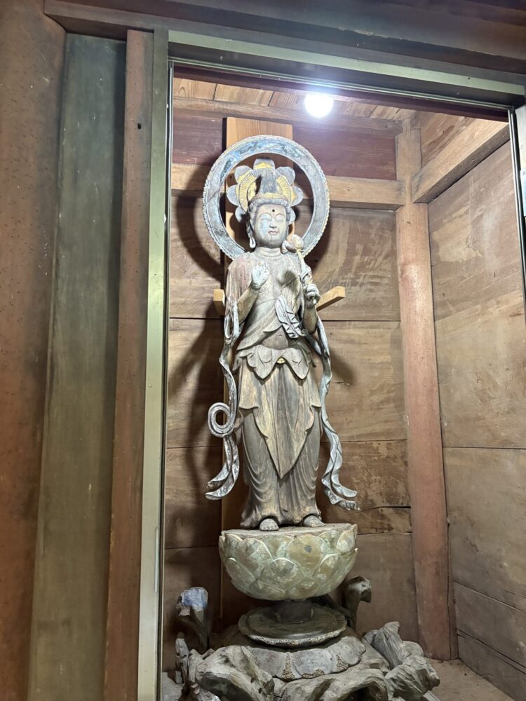 同じ境内の本堂には、渡来仏といわれる独特なお像も。お顔がなんとなく異国情緒がありますね。 またここでも大陸との繋がりを感じられました。