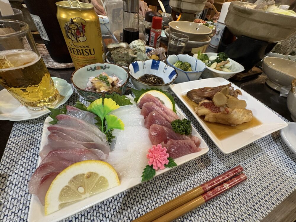 全て対馬産。貝は原田さんが自ら海に出て、海女となり、拾ってくるのだそう。とっっってもおいしかった!!!隣の海にはイカの漁船がたくさん浮ぶほど、イカの名産地。「初めて、こんな、美味しいイカを食べたのは。」というと原田さんはにっこり笑って「うちじゃいつでも食べれるけんね〜」と。ああ心ほぐれる。原田順子さんも観音様なんじゃないですか!?