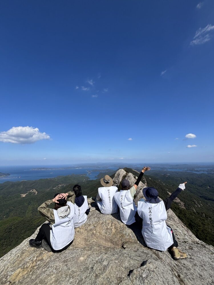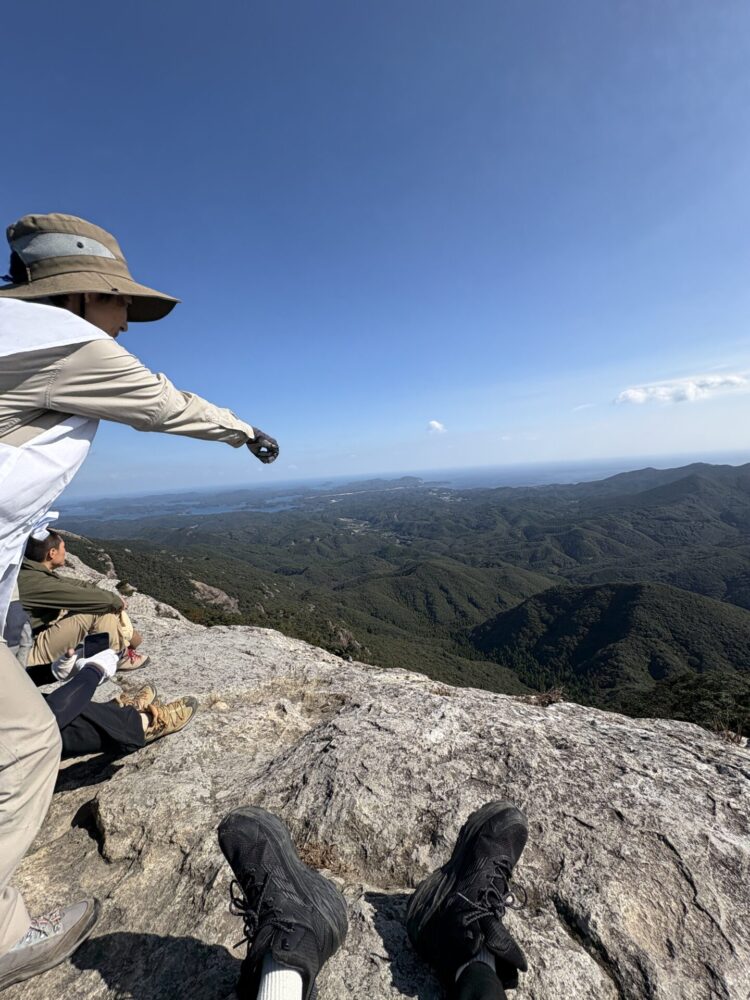 だから、山の麓には、イカリや釣竿など、海にまつわるものがたくさん奉納されていました。さあ、ここで少しだけ山を降りて、見晴らしのいい安定した場所でお昼ご飯です。体を使って、神様や観音様に触れ合って、大自然を体感した後にいただく対馬のご飯、美味しいのなんの!しかもまた、この登山をずっとポットに入れた熱湯を背負って運んでくれていた川口さんが美味しいコーヒーを淹れてくれました。対馬のお塩を使ったスイーツまで準備してくださり!感謝感激です。