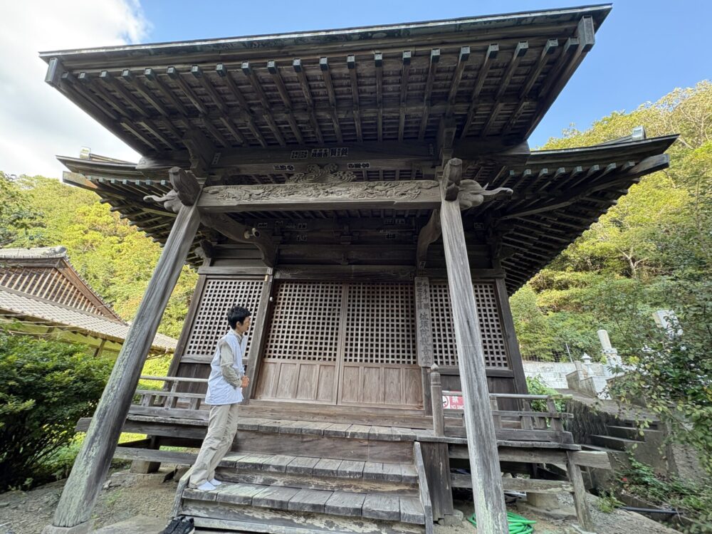 異国情緒も感じつつ、薄い彫りとなだらかな衣のひだの表現に、平安時代らしさも感じて、きっと立派なお堂だったんだなぁと強く思いました。大西住職の言葉通り、素朴で対馬っぽいお顔立ちですが、繁栄した村を支えた豪華さも感じるからすごい。きちんと観音経をあげて、お別れ。