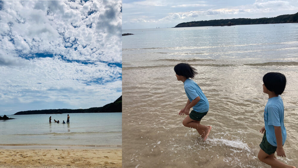 対馬は、ただの“自然の島”じゃないんです。歴史がすごく面白い。外交史や国防にまつわるストーリー、お寺体験ができる宿坊もあって、他の離島とはまるで質が違う。だから、表面をなぞるより、少し掘り下げて旅すると断然味わいが深まると思います。次は南のほうに泊まって、私は歴史に触れながら街を歩いてみたいと思っているんです。子どもたちは“釣りと虫採りのリベンジ”を誓っていますけどね(笑)。今回泊まった、海まで歩けて子連れファミリーでも気兼ねなく泊まれるペンションは、特に私たちのような家族連れには最高です。海風の音で目覚める朝、ビーチに向かって走る!緑も豊かで安らぎますよ。